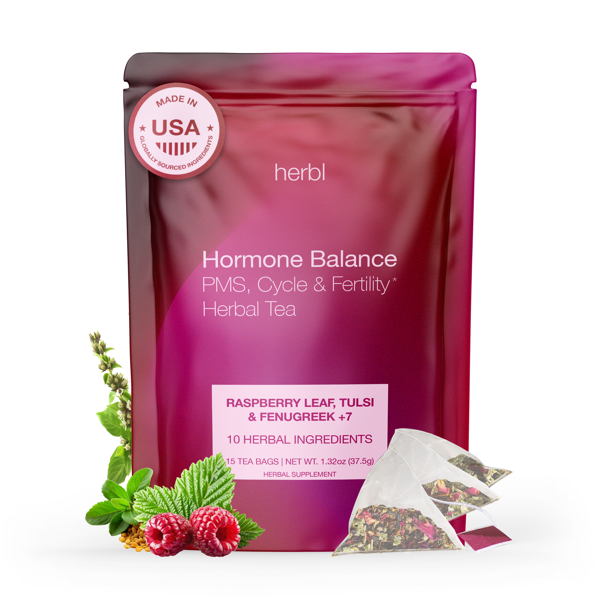 Herbl’s Hormone Balance Tea is a daily herbal ritual crafted with 10 powerful organic herbs used for centuries to support women’s health—including raspberry leaf, tulsi, black cohosh, and fenugreek.